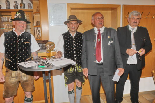 -6547 von links nach rechts: Olf Lehmann, Böllerreferent Gau Massenhausen, Robert Weinsteiger, Böllerreferent Gau und Landkreis Freising, Adolf Mayr, 1. Gauschützenmeister Massenhausen, zusammen mit Valentin Harrieder, 1. Gauschützenmeister Freising
