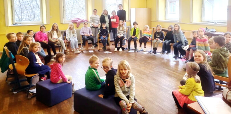 Neben den ausgewählten Liedern für die Kommunion stehen auch Spiele zur Gemeinschaftsbildung, bayrische Gstanzln, Stimmbildung und viele Elemente aus der Musikpädagogik im Mittelpunkt. Besonders das freie Tanzen findet in diesem Projekt seinen Platz, bei dem die natürlichen Bewegungen des Körpers zur Musik im Focus stehen. Es geht darum, sich vollständig der Bewegung hinzugeben, ohne sich Gedanken darüber zu machen, wie es aussieht oder was andere denken könnten. Manchmal gar nicht so einfach. Besonders spannend ist unser neues „Chorgespenst“, das auf wundersame Weise immer ein Schranktürchen aufgehen lässt wenn wir tanzen. Natürlich steht auch eine Generalprobe in der Kirche mit der tollen Kommunionband unter der Leitung von Birgit Detsch auf dem Programm.