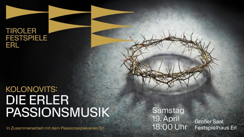 Was während der Aufführungen ab 25. Mai mit einem kleineren Ensemble jedes Wochenende bis 4. Oktober die Vorstellung begleiten wird, kommt im Festspielhaus in großer Orchesterbesetzung schon im April zur Uraufführung, umrahmt von Texten des bekannten Schauspielers und Regisseurs der Passionsspiele Martin Leutgeb. So können die Gäste von Nah und Fern die langjährige enge Partnerschaft zwischen den Passions- und den Festspielen leibhaftig erleben und sich am Osterwochenende schon gemeinsam mit den Erlern auf die Passionsspiele einstimmen.
