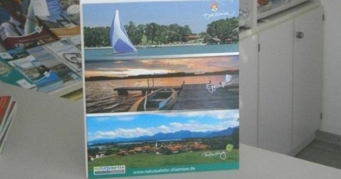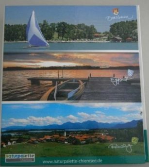 Noch rechtzeitig zur Hauptsaison konnten für die Naturpalette vom Chiemsee, dies sind die Orte Breitbrunn a. Ch., Eggstätt und Rimsting, die neuen Gäste-Info-Ordner geliefert werden. Auf der Front sind die drei Gemeinden mit aktuellen Fotos abgebildet.