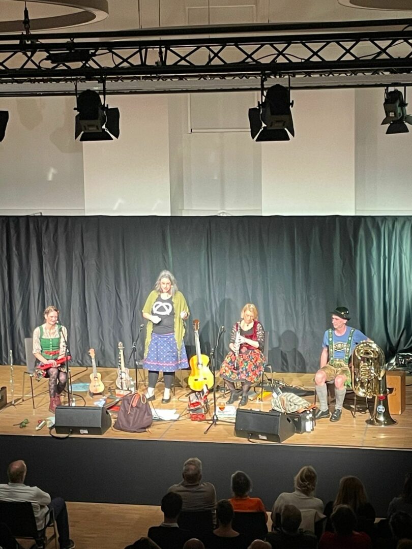 Mit Geschichten aus dem Leben, dem Alltag, über Traditionen und gespickt mit Musik an 20 Instrumenten gab es Lieder zum Auftanken für die Seele sowie politische Warnungen vor dem Rechtsruck und dem melodischen Wunsch einmal bei einem Volksfesteinzug mitgehen zu dürfen. Erfrischend herzlich und erfrischend satirisch nahmen die drei Musikerinnen Katrin Stadler, Katrin Zellner und Marita Gschwandtner samt Tubabläser Tobias Hegemann das Leben in Bayern aufs Korn und kreierten dabei neue Wörter und gründeten den mittlerweile schon fast legendären TKEV (Traditionskocherhaltungsverein Erdäpfebratl).