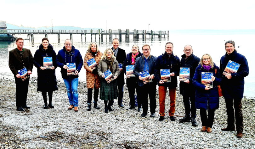 Foto von Bernd Nitschke, Pressereferent in Chieming: BürgermeisterInnen und TouristikerInnen der neuen „6 am Chiemsee“ aus Breitbrunn, Gstadt, Seeon-Seebruck, Chieming, Grabenstätt, Übersee mit ihrem neuen gemeinsamen Gastgeberverzeichnis 2025