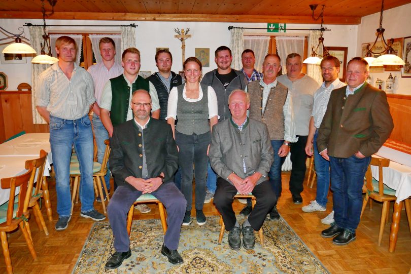 - Die neue Vorstandschaft von li. nach re. – Josef Gasbichler, Josef Obermüller, Martin Pfaffinger (Vertreter Jungzüchter), Christohp Kaufmann jun. (Vertreter Jungzüchter), Christine Böck, Sebastian Bauer , Christian Schmid, Mathias Schnaiter, Christoph Kink, Andreas Rummelsberger (Schriftführer) und Herbert Rothmayer Herbert ( Kassier ). Sitzend: li. 1. Vorsitzender Hans Mayer und re. 2. Vorsitzender Christoph Kaufmann.