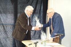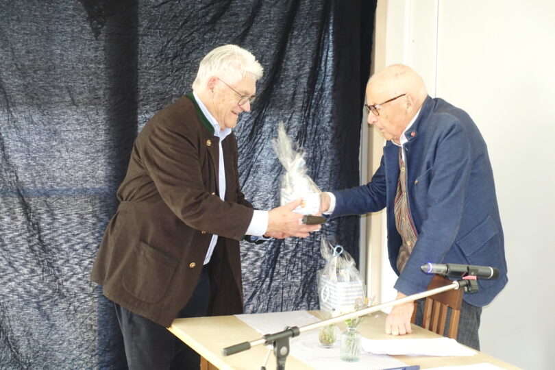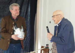 Ehrende Worte der Anerkennung und Abschiedsgeschenke gab es für Dr. Wolfgang Berka, er gehörte seit 2013 dem Beirat an und er war seit 2019 insbesondere mit dem Thema Inseldom als Zweiter Vorsitzender aktiv. 18 Jahre diente Helmut Eberl als Organisator und Schriftführer den Herrenchiemseefreunden. Ein Ur-Gestein des Vereins war und ist Bernhard Greimel aus Unterwössen, er trat 1994 dem Verein bei, war von 1995 bis 2007 dessen Schriftführer, von 2007 bis 2019 der Zweite Vorsitzende und ein Jahr nach dem Tod von Lorenz Kollmannsberger der interims-geschäftsführende Vorstand. All den Genannten und dem ausgeschiedenen Kassenprüfer Horst Kramer dankte von Daumiller mit Geschenken und den Worten: „Mit Eurer vertrauensvollen und loyalen Mitarbeit seid Ihr zu Freunden geworden und wir sind uns sicher, dass wir auch weiterhin im Sinne des Vereins verbunden bleiben“.
