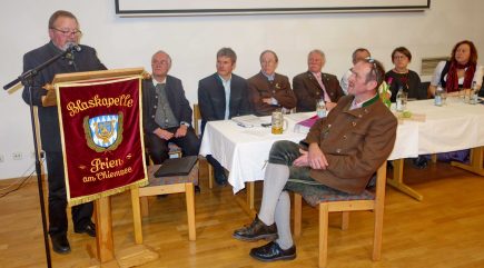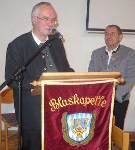 Leonhard Eisner als Bezirksvorsitzender konnte unter den vielen Ehrengästen unter anderem die Bezirksräte Sebastian Friesinger, Sepp Hofer und Daniel Reuter sowie als Vertreter des Musikbundes Ober- und Niederbayern Vizepräsident Florian Bauer, das Mitglied des Musikausschusses Irmi Wohlmuth und Verbandsjugendleiter Benedikt Paul willkommen heißen. Stellvertretender Landrat Josef Huber vom Landkreis Rosenheim bezeichnete die Blasmusikanten als wertvolle Kulturträger, die in einer hektischen Zeit mit ihrer Musik für Entspannung sorgen. Huber versprach, auch zukünftig bei der Suche nach Übungsräumen unterstützend zu helfen und er zitierte Ludwig von Beethoven mit den Worten: „Musik ist eine höhere Offenbarung als jede Weisheit und Philosophie“. In einem weiteren Grußwort dankte Landtagsabgeordneter Otto Lederer auch namens des MON-Präsidenten Marcel Huber und seines Landtagskollegen Klaus Stöttner für die vielen Aus- und Fortbildungs-Aktivitäten und er sagte: „Musik ist heute allgegenwärtig, kann allerorten und rund um die Uhr gehört werden, dennoch wären Bayern und die Welt ärmer, wenn wir keine Blasmusik hätten. Wer Musik nicht liebt ist nur ein halber Mensch, wer Musik liebt ist ein dreiviertel Mensch und wer Musik macht ist ein ganzer Mensch“.