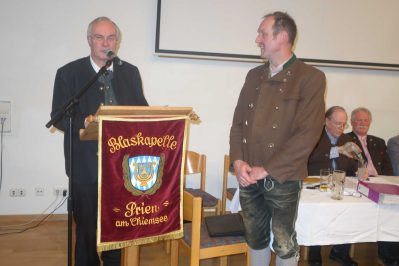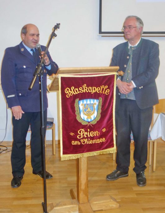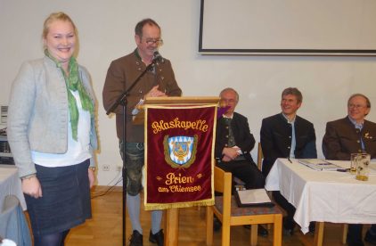 In seinem Rück- und Ausblick dankte Leonhard Eisner der Musikkapelle Griesstätt für die ausgezeichnete Übernahme des letztjährigen Bezirksmusikfestes mit Marschwertung. Die Veranstaltung „Klingender Chiemsee“, die im Vorjahr dem Wetter zum Opfer fiel, soll heuer am Sonntag, 22. September neu angesetzt werden. Bezirks-Dirigent Christoph Danner aus Kiefersfelden bezeichnete die Wertungsspiele und eine Marschwertung mit einem erweiterten Angebot als wichtige Projekte. Bezirksjugendleiterin Michaela Haindl aus Evenhausen konnte von 181 Teilnehmern im letzten Jahr für das Silberne und Bronzene Leistungsabzeichen berichten, für heuer haben sich bereits wieder 183 Musikantinnen und Musikanten angemeldet. Für den 5. Oktober plant Michaela Haindl mit ihrer Stellvertreterin Antonia Mayr aus Eiselfing ein Jugendkapellen-Treffen im nördlichen Teil des Landkreises Rosenheim. Eine einwandfreie Kassenführung wurde Kassenverwalter Sebastian Unker aus Brannenburg durch Prüfer Martin Grick aus Rohrdorf bescheinigt. Sebastian Strohmayer als Dritter Vorstand der Priener Blaskapelle und Walter Freitag als Zweiter Vorstand der Feuerwehr Prien luden unter anderem mit zwei Kurzfilmen zu den Priener Festwochen (www.priener-festwochen.de) ein, dessen Höhepunkt das Bezirksmusikfest mit Kirchenzug nach Trautersdorf, mit ökumenischem Gottesdienst und mit einem Festzug durch Prien sein wird. Ab dem Jahr 2020 wird vom Bezirksmusikverband Inn-Chiemgau noch ein Ausrichter für das Bezirksmusikfest gesucht, hierzu sagte Leonhard Eisner: „Bitte geht in Euch, das Fest braucht nicht unbedingt ein Jubiläum oder ein Festzelt, da haben wir individuelle Gestaltungs-Möglichkeiten“. Kurz darauf gab es Applaus für die Musikkapelle Nussdorf am Inn für deren Ankündigung, 2023 das Bezirksmusikfest ausrichten zu wollen.