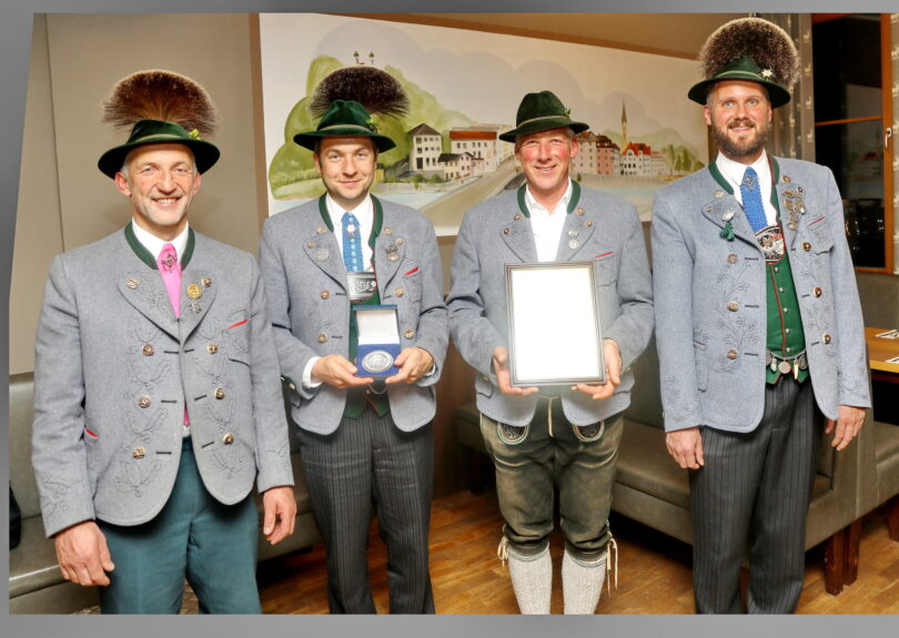 Auf der Jahreshauptversammlung des Gebirgstrachtenvereins „Edelweiß“ Bad Tölz zeichnete 1.Gauvorstand Sepp Ponholzer, Christian Bauer mit der silbernen Gaumedaille aus. Die Freude für die Trachtensache und die Gemeinschaft im Verein begeisterten Christian in seinen Jugendtagen so sehr, dass er bereits mit 17 Jahren zum zweiten Jugendleiter im Verein gewählt worden ist. Dieses Amt hatte er 6 Jahre inne. Im Jahr 2005 wurde Christian 2. Vorstand des Vereins und ab dem Jahr 2016 führte er den Verein als 1. Vorsitzender. Bauer selbst konnte an dem Versammlungsabend seinen Vorgänger Heinz Bader, der den Verein 15 Jahre als Vorstand diente zum Ehrenvorstand ernennen. Der neugewählte Vorstand Andreas Wachs durfte in einer seiner ersten Amtshandlung den Geehrten herzlich zu ihren Auszeichnungen gratulieren.