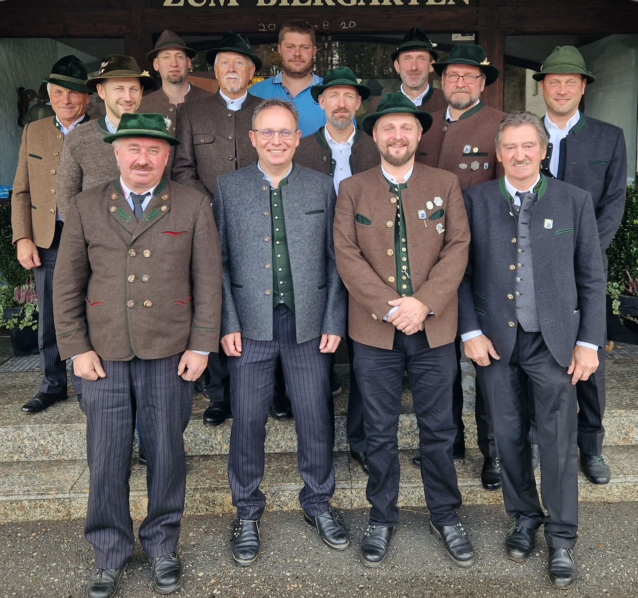 Die neu gewählte Vorstandschaft des Krieger- und Reservistenvereins Frasdorf-Umrathshausen Der neu gewählte Vorsitzende des KRV Georg Wörndl (vorne, zweiter von rechts) mit Bürgermeister Daniel Mair und seinem Stellvertreter Hans Steinberger (links) sowie seinem Vorgänger Hans Winkler (vorne rechts) im Kreis der Vorstandschaft