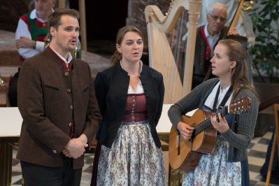 Vor der JHV trafen sich die VolksmusikantInnen zum traditionellen Mariensingen in der Basilika Wilten. Abt Raimund Schreier gestaltete die feierliche Stunde mit passenden Texten. Musikalisch wirkten der Afelder Dreigesang, die Augeiger, der Walder Dreigsang, sowie die Familienmusik Stecher und die Innbrüggler rund um ORF-Moderator Franz Posch mit.