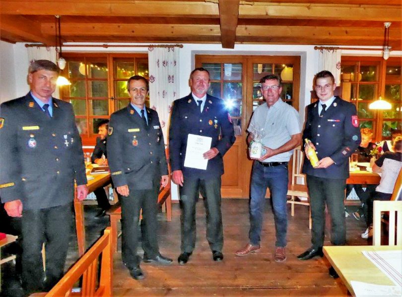 Foto: v.l. KBI Martin Gruber, KBR Richard Schrank, Andreas Ramsauer (40- Jahre), BGM Georg Huber und Erster Kommandant Peter Heiß