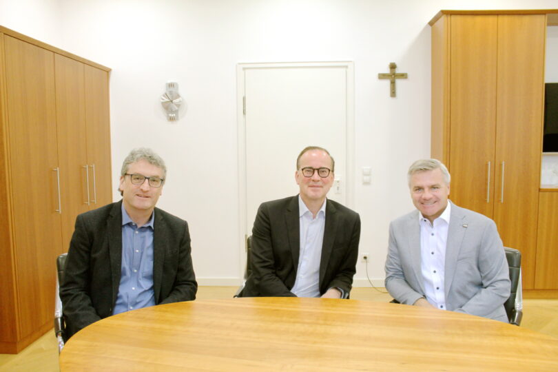 Bericht und Foto: LRA Landshut –  Landrat Peter Dreier (rechts) und Landkreis-Wirtschaftsreferent Ludwig Götz (links) im Austausch mit Dr. Reinhard Saller vom Niederbayern-Forum e. V.