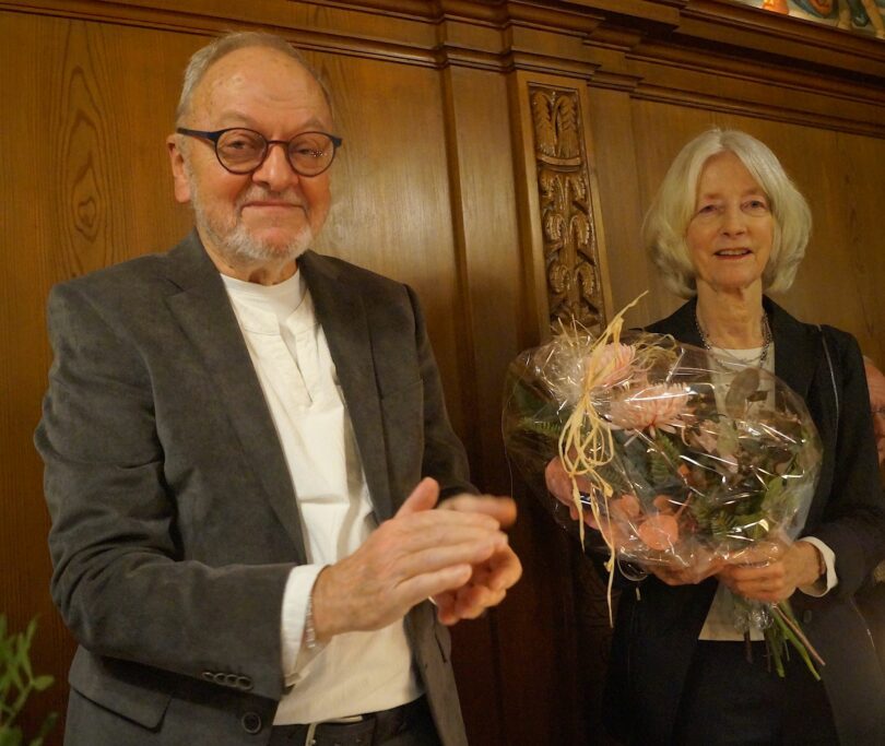 Foto: Wolfgang Richter bedankt sich bei Nike Wagner für Ihren Besuch und den aufschlussreichen Vortrag.