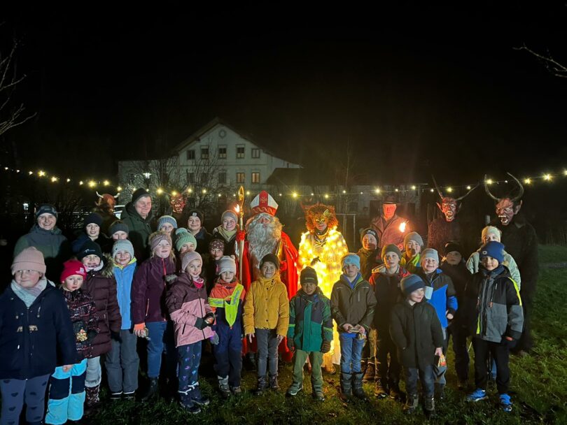 Der Heilige Nikolaus ist heuer mit 5 Kramperln unterwegs gewesen. Auf einem Wagen, der mit Daxen und Lichtern geschmückt war. Aber auch ein nettes Engerl hat er dabei gehabt. Es versammelte sich die Kindergruppe um den Nikolaus und er las Ihnen aus dem goldenen Buch vor. Voller Aufmerksamkeit waren die Kinder dabei. Auch die Jugendgruppe konnte der Nikolaus nur loben, denn die Jugendleiter sind sehr zufrieden mit den Dirndln und Burschen. Maria Berger und Miriam Nagl, die beiden Jugendleiterinnen wurden vom Nikolaus nicht vergessen und für ihr Engagement gelobt. Als Belohnung erhielten natürlich alle Kinder ein kleines Sackerl, gefüllt mit Schokolade, Lebekuchen und Nüssen. Als der Nikolaus sich verabschiedete, war dann die Angst der Neugierde gewichen und die Kinder liefen den Kramperln bis zu den Wagen nach. Die Mamas der Plattlerkinder sorgten für den kulinarischen Teil der Veranstaltung und bei einer Tasse Punsch konnte man es am Lagerfeuer noch gut aushalten.