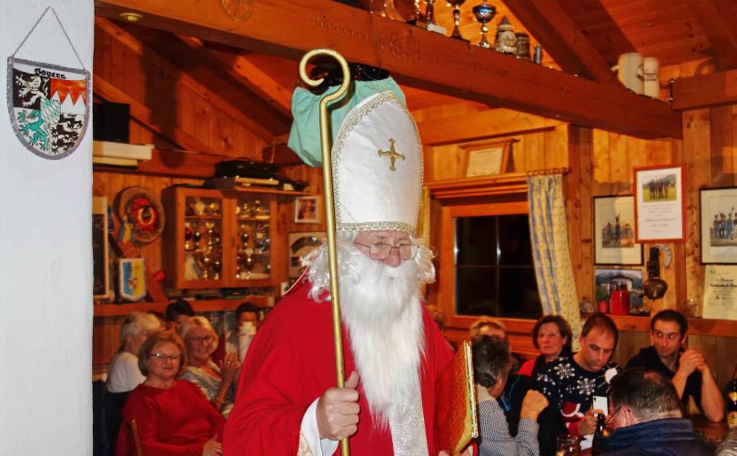 Himmlischen und gar unterhaltsamen Besuch erhielt zum Ende seines Vereinsjahres der Hufeisenverein Prien-Kaltenbach in seiner Vereinshütte. Der Heilige Nikolaus machte seine Aufwartung und zur Freude und Erleichterung musste der schon von draußen hörbare und störrische Krampus wegen des starken Besuchs und des damit gegebenen Platzmangels draußen bleiben. So trat der Nikolaus alleine ein und erzählte aus dem Reich der Phantasie seine oft turbulenten Erfahrungen. „Lieber Nikolaus, aber auch liebe Mitglieder, vielen Dank für Euer Kommen und auf das ganzjährige Miteinander“ – so Hufeisenvorstand Peter Freund zum Ende des Nikolaus-Besuchs.