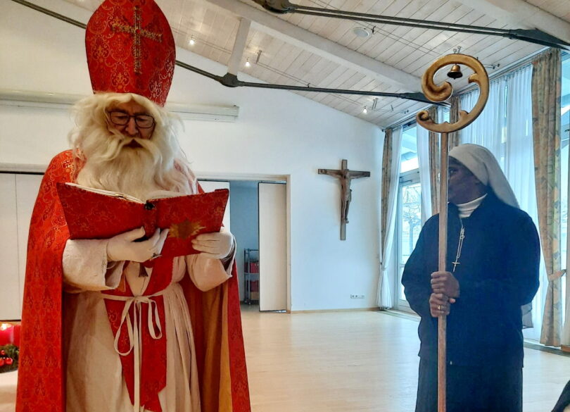Ein besonderes Jubiläum konnte kurz vor Weihnachten beim traditionellen Advents-Treffen des Priener Senioren-Clubs im Katholischen Pfarrheim der vormalige Pfarrgemeinderatsvorsitzende Hans-Dieter Dummert feiern. Bereits seit 50 Jahren erfreut er in Prien Klein und Groß mit seinem Nikolausdienst. Beim heurigen Senioren-Treffen hielt er Rückblick auf seinen irdischen Einsatz als Heiliger Nikolaus und erinnerte dabei an sieben Geistliche, die er seit 1973 begleiten durfte. Es waren und sind die Pfarrer Andreas Bals, Konrad Huber, Josef Preis, Klaus Franzl (als Administrator), Bruno Fink, Klaus Hofstetter und nunmehr Gottfried Grengel. Grengel als derzeitiger Pfarrer von Prien und Leiter der Pfarrverbände vom Westlichen Chiemseeufer und von Bad Endorf ließ es sich trotz eines vorweihnachtlich dicken Terminkalenders nicht nehmen, bei den Senioren vorbeizuschauen und sich bei Hans-Dieter Dummert für dessen langen und treue Dienste als Nikolaus zu danken.