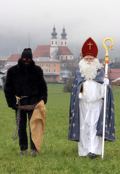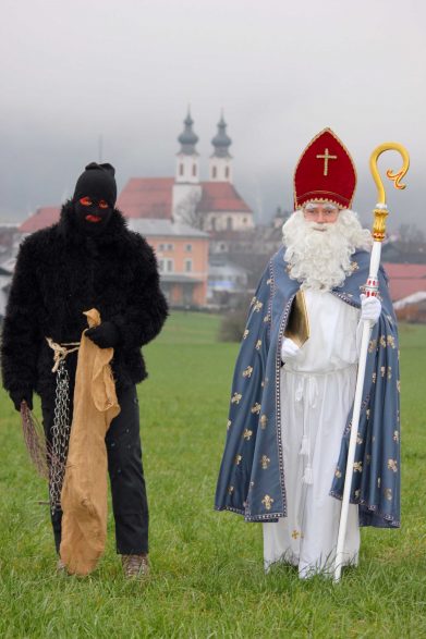 Nebelschwaden ziehen durch das Priental und es wird leicht dämmrig, da macht sich der Nikolaus mit seinem Krampus auf dem Weg. Die Kolpingfamilie Aschau war auch in diesem Jahr wieder mit Nikolaus und Krampus bei unzähligen Familien unterwegs. Ein besonderes Bild zeigte sich dabei mit der katholischen Aschauer Pfarrkirche „Darstellung des Herrn“ im Hintergrund. Der Erlös in diesem Jahr geht an das Benedetto-Menni-Nest e.V., wo derzeit zwölf behindertengerechten Appartements in Aschau i.Chiemgau entstehen.