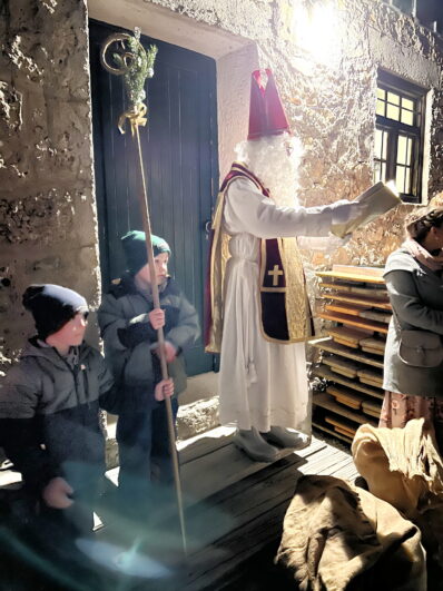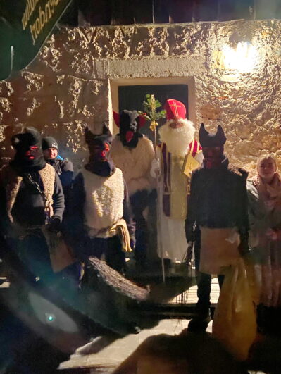 Alm. Oben angekommen, warteten bereits die Vorplattler mit Grillfleisch und Würstel auf ihre Schützlinge. Gut gestärkt war es dann endlich so weit: der Nikolaus kam zu Besuch. Jedem Kind wusste er ein Satzerl, welches durch die Bank viel Lob verteilte und wenig rügte. Gleich vier Kramperl hatte er dabei, die dem Nikolaus beim Verteilen der Sackerl geholfen haben. Es war wieder ein schöner Jahresabschluss, der für die Baschtler Trachtenjugend zur Einstimmung auf die Weihnachtsfeiertage einfach mit dazu gehört.