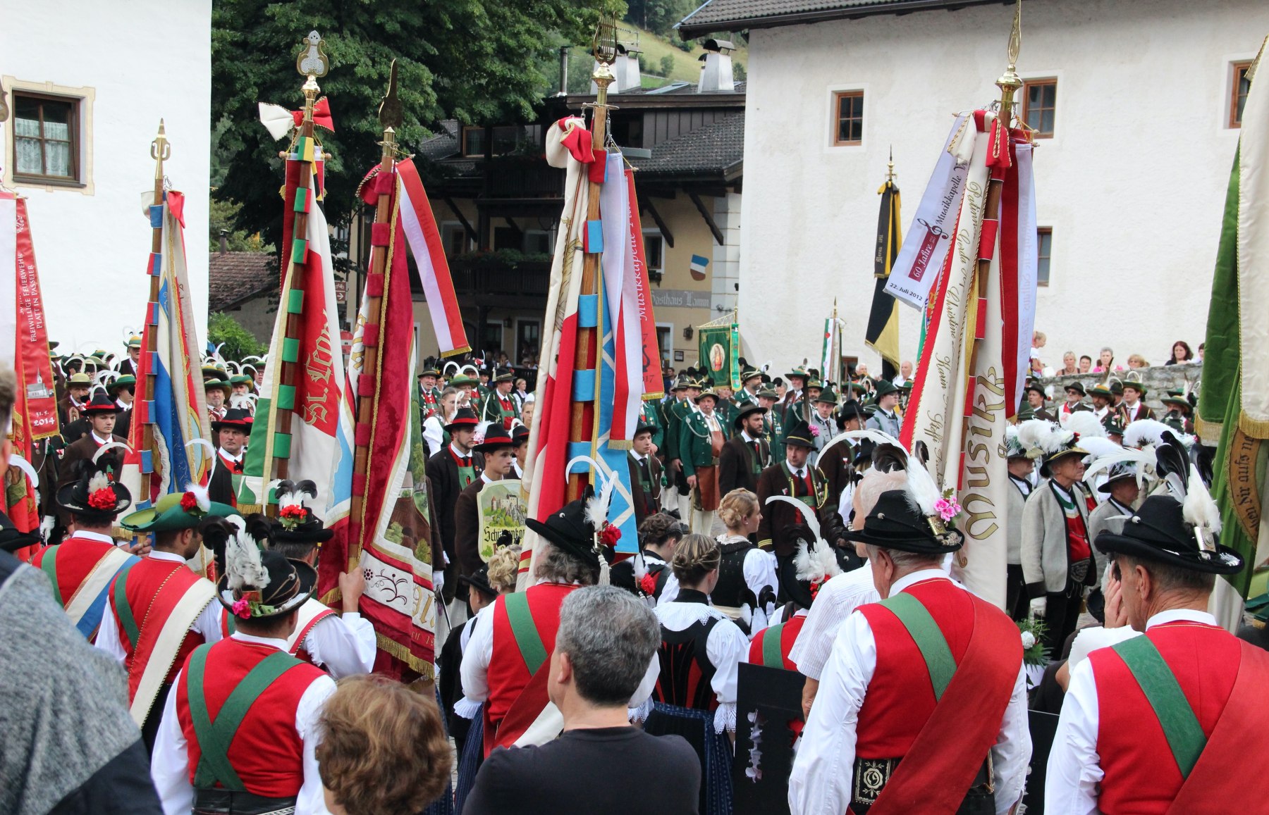 Das Alpenregionstreffen 2020 im Passeiertal wird ein farbenfrohes Fest im Zeichen der grenzüberschreitenden Freundschaft und Kameradschaft, i.B. die 60-Jahr-Feier der Schützenkompanie St. Martin in Passeier im vergangenen August (Foto: Maria Pichler)