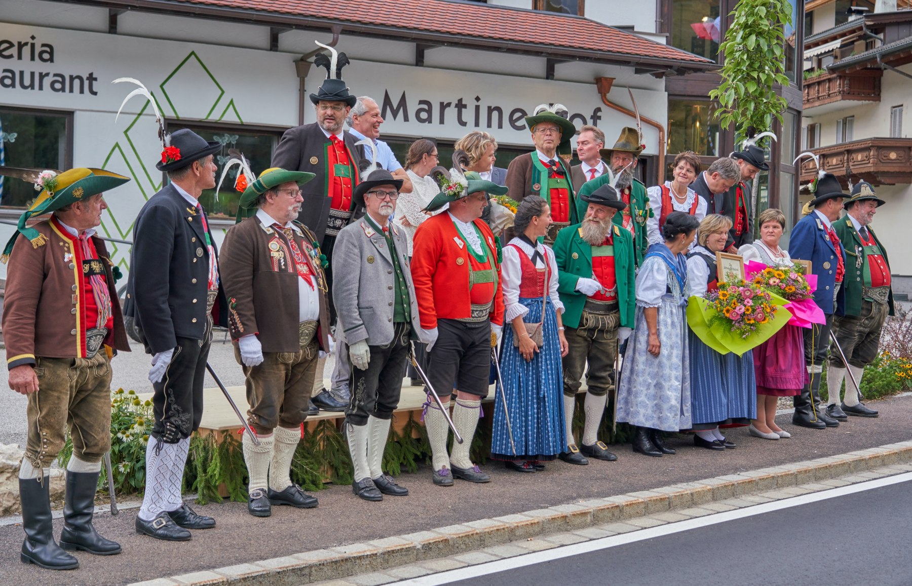 Zahlreiche Ehrengäste aus dem gesamten Alpenraum werden zum großen Festumzug mit 10.000 Teilnehmern am Sonntag, 24. Mai im Passeiertal erwartet, i.B. die Ehrengäste bei der 60-Jahr-Feier der Schützenkompanie St. Martin in Passeier im vergangenen August (Foto: Roman Schenk)
