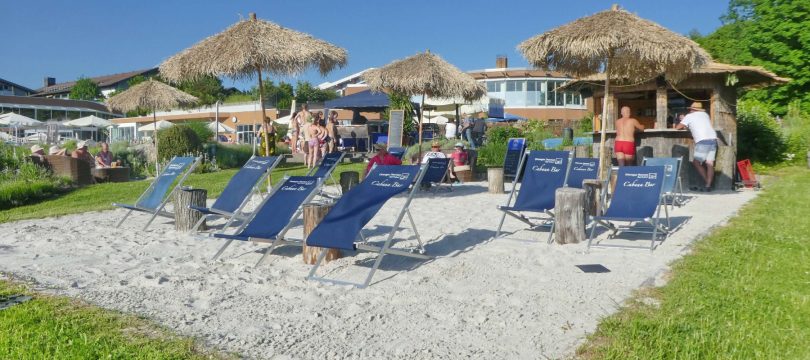 Am Freitag, 6. September, 18 bis 23 Uhr, findet das letzte Grill & Chill 2019 in den Chiemgau Thermen statt. Thermen- und Saunagäste dürfen sich nochmal auf leckere Grillspezialitäten vom Holzofengrill, spritzige Cocktails und musikalische Unterhaltung von den „Waikiki Sundowners“ freuen, die mit Hawaii-Songs und Country Blues für eine ausgelassene Abendstimmung sorgen. Entspannung pur – egal ob im Liegestuhl bei Sonnenuntergang, bei einem Saunaaufguss, einer Gongmeditation oder beim gemütlichen Stockbrotgrillen am Lagerfeuer.