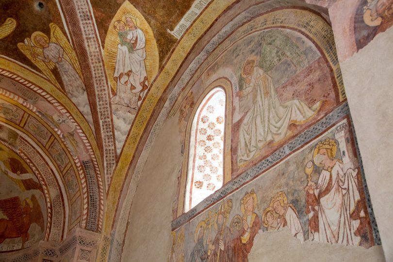 Am Donnerstag, 17. Oktober begleitet die Gästeführerin Helga Schömmer letztmals für 2019 Interessierte durch das romanische Kirchlein Sankt Jakobus und berichtet bei der einstündigen Führung über die einzigartige Geschichte dieses sakralen Bauwerks. Der romanischen Erstausmalung folgte 1420 der gotische Bilderzyklus – heute zählen die vorliegenden Fresken zu den Besterhaltensten im oberbayrischen Raum. Diesem zweiten Bilderzyklus gehört die Abbildung der messianischen Weissagung im Kreuzgratgewölbe des Chorjoches an. Hier ist auch die weltberühmte Dreifaltigkeitsdarstellung zu sehen. Die Einheit im Körper mit zwei Händen, bekleidet mit einem Hauptgewand und einem umhüllenden Mantel; die Dreiheit in den Häuptern und dem darauf verteilten göttlichen Nimbus mit je einem Hauptstrahl. Zur Rechten Gott Vater, zur Linken Christus und in der Mitte vermeintlich und umstritten ein frauenhaft anmutender Heiliger Geist.