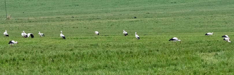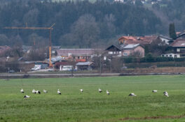 Die Störche scheinen den Chiemgau nicht verlassen zu wollen! Immer noch hält sich eine große Gruppe von 20 bis 30 Weißstörchen im Dezember bei Bernau am Chiemsee auf – ist das die Vorausahnung eines milden Winters?