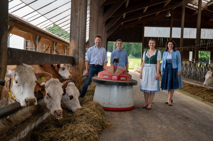 Die digitale Transformation in der Landwirtschaft trägt im großen Maße dazu bei, den Umweltschutz und das Tierwohl zu verbessern. Gleichzeitig entlasten digitale Technik und Software-Lösungen die Betriebe und verbessern das Betriebsmanagement. Jetzt wollen Landwirtschaftsministerin Michaela Kaniber und Digitalministerin Judith Gerlach gemeinsame Synergieeffekte nutzen, um bei übergreifenden zentralen Themen der digitalen Transformation weiter voranzukommen. Auf einem oberbayerischen Milchviehbetrieb mit Melkroboter informierten sich die beiden unter dem Motto „Bits, Bytes und Bauernhof“ über vorhandene Techniken und neuste Entwicklungen. Die Landesanstalt für Landwirtschaft und private Entwickler stellten neue Systeme vor. Die beiden Ministerinnen wollen sich dafür einsetzen, dass digitale Lösungen noch schneller für die Landwirtschaft verfügbar sind. „Kaum ein Bereich ist so dynamisch wie die Digitalisierung. Da ist es wichtig, dass wir es schaffen, durch verstärkte Zusammenarbeit die Landwirtschaft an dieser Entwicklung teilhaben zu lassen. Die Technik muss den Landwirten bei ihrer täglichen Arbeit helfen und darf sie nicht überfordern. Nur so hat sie den Nutzen, den wir uns vorstellen“, sagte Landwirtschaftsministerin Michaela Kaniber.