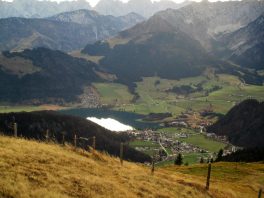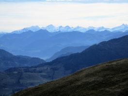 Der Schnee vom letzten Wochenende ist bis weit hinauf wieder weggetaut, da es bei der momentanen Inversionswetterlage in den Tallagen sehr kalt ist, aber über dem Nebel die Sonne scheint. Auch am Sonntag könnte es nach den Prophezeiungen der Meteorologen so ein Wetter geben und wie bereits in unserem Bericht über eine Novemberwanderung auf die Karalm , empfehle ich dann wieder einen Ausflug auf die sonnigen Grasgipfel der südlichen Chiemgauer Alpen über dem Kaiserwinkel, diesmal zum Wandberg und Lochner Horn.