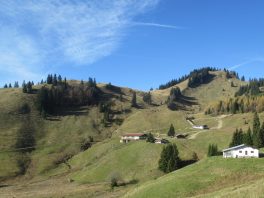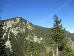 Dann nehmen wir den schmalen Steig in Richtung Priener Hütte, der bei Nässe sehr glitschig werden kann, bis wir wieder zu einer Weggabelung kommen. Jetzt geht es rechts hinunter zur Wuhrsteinalm. Wir steigen über die Karlalm (verfallen) hinunter in den Karlwinkel, gehen unterhalb des Breitensteinmassivs weiter auf einem Wiesensteig bis zur Wuhrsteinalm, von der wir auf breitem Forstweg hinunter zum Parkplatz marschieren.