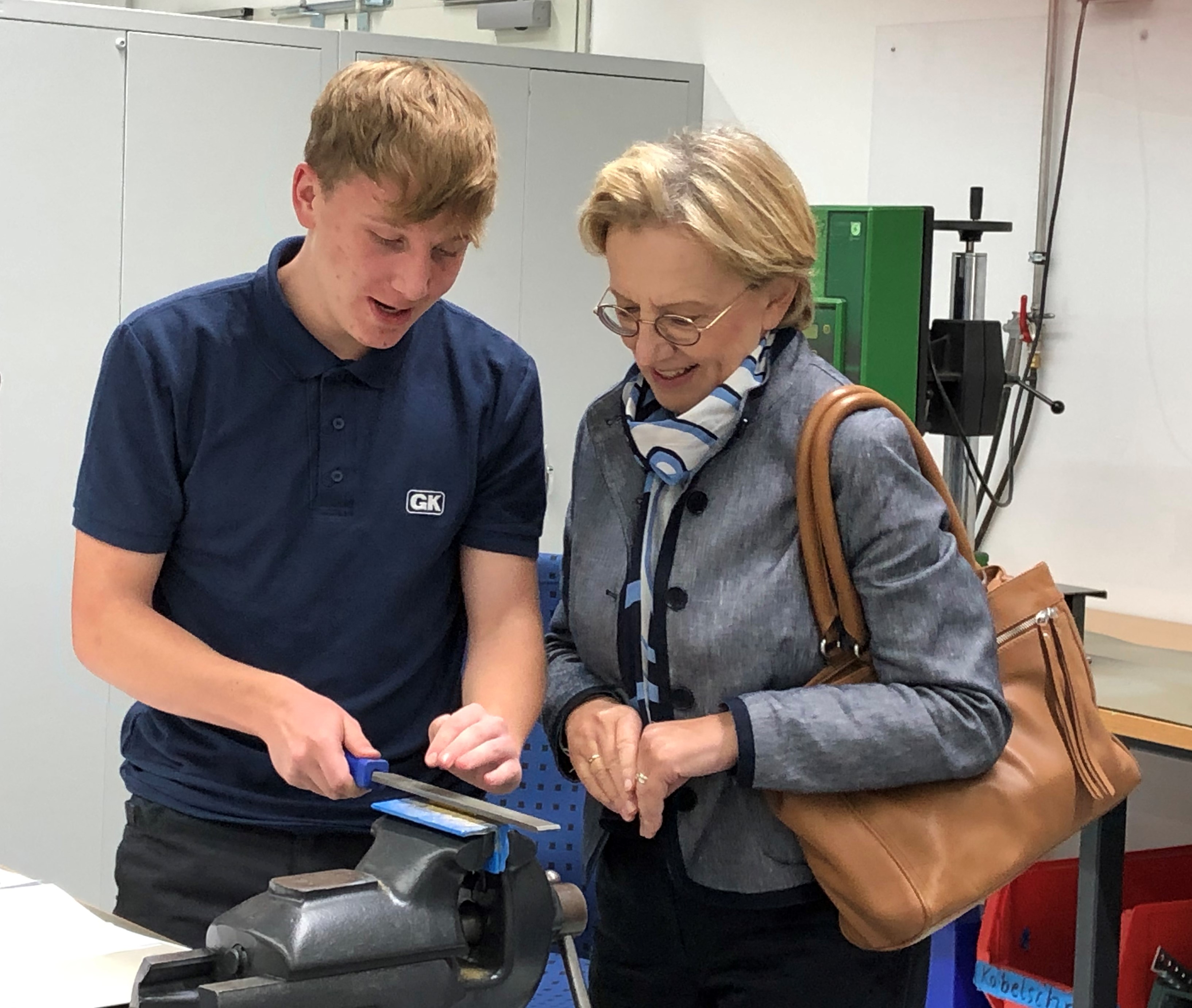 Zum Bayerischen Tag der Ausbildung nutzte Regierungspräsidentin Maria Els die Gelegenheit, mit den Auszubildenden der Gustav Klein GmbH & Co. KG ins Gespräch zu kommen (Fotoquelle: Regierung von Oberbayern).