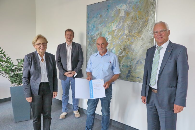 Für seine Verdienste um die Energiewende und den Klimaschutz hat Oberbayerns Regierungspräsidentin Maria Els den Glonner Zimmerermeister und Bautechniker Hans Gröbmayr geehrt. „Er ist ein Impulsgeber und hat die Energiewende im Landkreis Ebersberg maßgeblich vorangetrieben“, lobte die Regierungspräsidentin in ihrer Laudatio. Als Energiebeauftragte der Bayerischen Staatregierung für den Regierungsbezirk Oberbayern würdigte sie im Beisein von stellvertretendem Landrat Walter Brilmayer sowie Simon Schramm, Professor für regenerative Energien und Energienetze an der Hochschule für angewandte Wissenschaften München, das bemerkenswerte Engagement Gröbmayrs im Rahmen einer Feierstunde in München mit einer Dankurkunde.