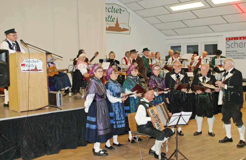 Die Vorsitzende vom Trachtengauverband Oberfranken, Renate Koch, grüßte mit den Worten „Wo man singt, da lass dich ruhig nieder“. Verbindet doch das Singen von Liedern und das gemeinsame Musizieren das Gemeinschaftsgefühl, was der Abend wiederum zeigte. Durch das Programm führte Stefan Ender von den „D´Rosenbergler“ Kronach“. Gekonnt leitete er mit zahlreichen Anekdoten zu den einzelnen Gruppen über. Mitgewirkt haben weiter die Singgruppe vom „Hummeltrachten-Erhaltungsverein“ Mistelgau, die Stubenmusik vom Trachtenverein „Alt-Bayreuth“ und die Singgruppe der Zechgemeinschaft Neukenroth. Die Tanzgruppe vom gastgebenden Verein überraschte mit Volkstänzen. Besonders unter die Haut ging das Lied „S´is Feieromd“. Zum Abschluss vom offiziellen Programm spielte die Bläsergruppe aus Neukenroth den „Glück-auf Marsch“.