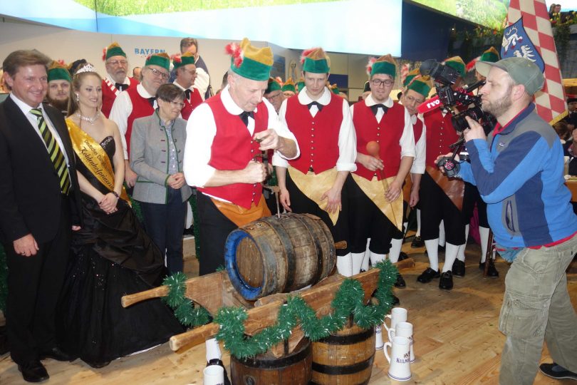 Die Genußregion Oberfranken e.V. hat für ein ganz besonderes Augen-Schmankerl auf der Grünen Woche gesorgt. Auf deren Einladung kamen der Büttnerverein von Kulmbach und die Stadtkapelle Kupferberg zu einem gemeinsamen Auftritt in der Bayernhalle. Einzigartig war vor allem das Anstechen des vereisten Holzfasses mit gutem Kulmbacher Bier. Davon einige Bildereindrücke.