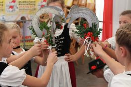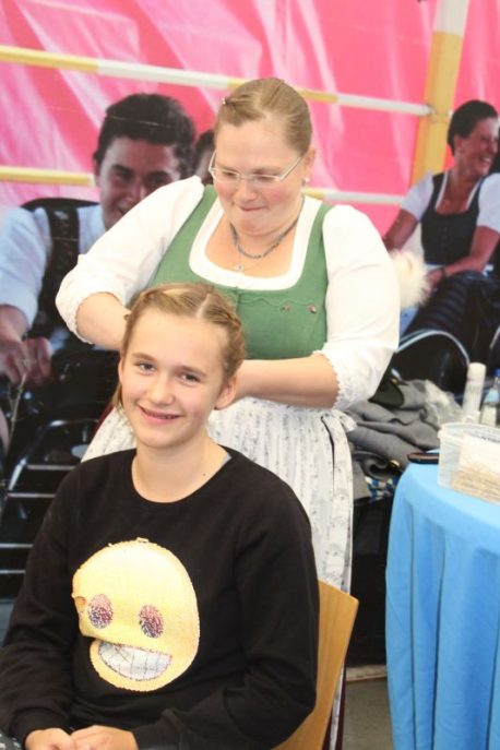 Wie auch in den letzten Jahren war auch in diesem Jahr die Trachtenjugend aus dem Landkreis Weilheim-Schongau wieder sehr aktiv auf der Oberlandausstellung vertreten. Neben einem Aktionsstand in der Halle der Jugendarbeit des Kreisjugendrings Weilheim-Schongau, waren die Trachtler fester Bestandteil des Bühnenprogramms im Bierzelt. Die Einteilung und Organisation übernahmen dabei federführend Franz Veitinger und Andal Huber vom Loisachgau. Am Stand der Trachtenjugend konnten sich die weiblichen Besucherinnen von den Deandln schöne Frisuren flechten lassen während die Burschen ihr Geschick beim Wettnageln mit einem „Rohrhammer“ unter Beweis stellen konnten. Neben Informationen rund um die Bayerische Trachtenjugend und des Bayerischen Trachtenverbands konnten die Besucher auch ein „Wia schau i ois Trachtler aus?“- Bild zur Erinnerung machen. Die Standbetreuung sowie das Bühnenprogramm übernahm dabei jeden Tag ein anderer im Landkreis ansässiger Gauverband. Der Freitag wurde dabei vom Loisachgau und der Antdorfer Jugendgruppe gestaltet, am Samstag war der Obere Lechgau mit der Wildsteiger Jugend vertreten, der Lechgau übernahm den Sonntag mit der Böbinger Jugendgruppe, der Huosigau gestaltete den Montag mit der Ettinger Trachtenjugend während am Dienstag die Oberländer Trachtenvereinigung die Standbetreueung übernahm. Der Höhepunkt auf der Oberlandausstellung war jedoch der „Hoamatnochmidog“ am 3. Oktober. Das abwechslungsreiche Programm aus Goaßlschnalzen, Plattln, Tanzen, Singen und Musizieren gestalteten die Gauverbände gemeinsam mit den Peitinger Goaßlern, der Steingadner Jugendgruppe (Lechgau), der Würfelmusi (Huosigau), der Huglfinger Trachtenjugend (Oberländer Trachtenvereinigung) und der Antdorfer Kindergruppe (Loisachgau). Die Besucher im sehr gut gefüllten Festzelt staunten nicht schlecht über die Vielfalt der Trachtenvereine im Weilheim-Schongauer Landkreis und honorierten dies mit kräftigen Applaus.