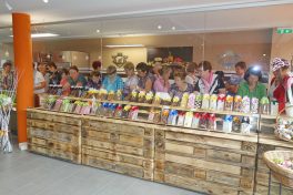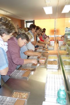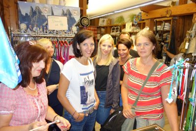 Alte Urlaubsbekanntschaften vom Attersee machten es möglich, dass die Gemeinde Bernau a. Chiemsee nunmehr einen Bus-Besuch mit rund fünfzig Landfrauen vom Verschönerungsverein Geboltskirchen in Oberösterreich bekam. Christoph Osterhammer von der Tourist-Information begrüßte die muntere Schar der touristisch interessierten Frauen und Bäuerinnen namens der Gemeinde und schlug ihnen zum näheren Kennenlernen das Trachtengeschäft Horrer und die Schoko-Laden-Werkstatt, beides in der Chiemseestraße vor. Karl und Irmengard Horrer erläuterten unter anderem die Kunst der Lederhosen-Herstellung und Stefanie Kania ließ die Frauen bei der Herstellung von individueller Schokolade gar selbst Hand anlegen. „Eine sehr interessante und seltene Kombination, beide Läden haben uns sehr gut gefallen“, so Reiseleiterin und Obfrau Anna-Maria Raab und Monika Zöbel, die Ortsbäuerin von Geboltskirchen. Den Besuchen in den beiden Bernauer Geschäften folgte noch eine stärkende Einkehr im Gasthaus „Alter Wirt“. Zur Erinnerung an den Bernau-Aufenthalt bekamen die Gäste ein Brillenputztuch mit Bernauer Motiv.
