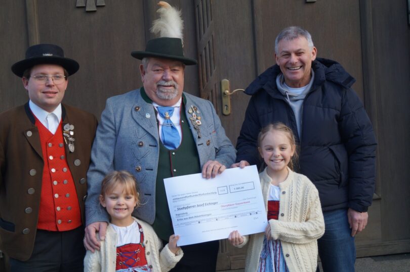 Stadtpfarrer Josef Eichinger sprach ein großes Vergelts Gott bei der Spendenübergabe den Organisator und Gebietsmusikwart Karlheinz Jaroschik, Gaumusikwart Tobias Lehner sowie an die Nachwuchsmusikantinnen Greta und Rosa Jaroschik stellvertretend für die insgesamt 25 Mitwirkenden aus und stellte bereits jetzt schon eine Wiederholung der Veranstaltung in seiner Stadtpfarrkirche im Raum.
