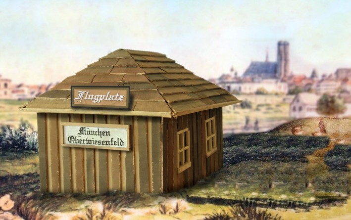 Eine einfache Holzbaracke und eine riesige Wiese, so sah es ca 1900 auf dem ersten Münchner Flugplatz aus. Das Fliegen war noch gar nicht erfunden. Es hatte sich bereits Otto Lilienthal mit der Fliegkunst beschäftigt, aber erfolgreich war er nicht. Vielmehr waren es Gasbollons oder Heißluftballons, die den Menschen den Fesseln der Erde entschweben ließ. Bereits seit ca 1800 wurden die Wiesen für militärische Zwecke verwendet. Es war genügend Platz für exerzierübungen und Betrieb der fliegenden Kisten. Motoren von BMW flogen dort den ersten Höhenweltrekord.