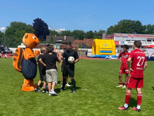 Insbesondere genoss es der OBI Biber mit den zahlreichen Kindern Zeit zu verbringen. Mit Luftballons und Gummibärli zauberte er ihnen ein Lächeln ins Gesicht und durfte mit einigen sogar feierlich den Ball für das Finalspiel überreichen. Dieses gewann der TSV 1860 Rosenheim, der zur Belohnung noch diesen Sommer gegen eine Auswahl des FC Bayern München antreten darf.