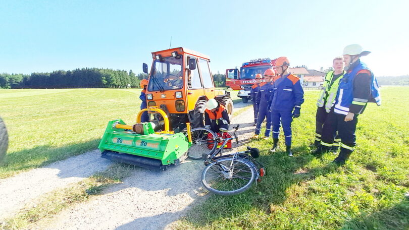 -wenn eingeklemmte Personen zu retten sind, gilt jeder Handgriff gut überlegt zu sein, Jugend-Einsatzleiter Michael Baumann (FFW Obing) gibt Anweisungen, wie das möglichst sicher und schnell durchzuführen wäre