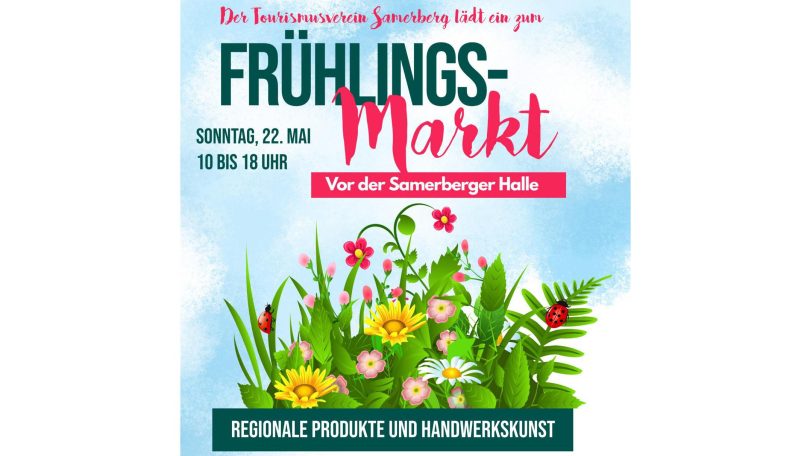 Also vormerken: Samerberger Frühlingsmarkt am Sonntag, 22. Mai 2022 von 10 bis 18 Uhr am Schulgelände vor der Samerberger Halle.