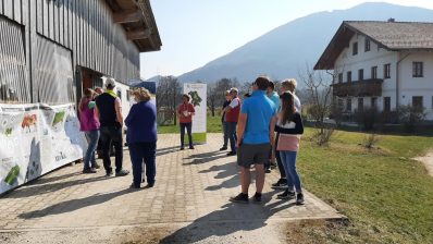 Nach mehrmaliger Pandemie- und Krankheitsbedingter Terminverschiebung, konnte der VHS Kurs „Rund um die Milchkuh – zu Gast auf einem Bio-Milchviehbetrieb“ am Samstag, 26. März 2022, endlich stattfinden. 20 Erwachsene und Kinder fanden sich bei strahlendem Sonnenschein und sommerlichen Temperaturen auf dem Huberhof der Familie Kronast in Großholzhausen ein.