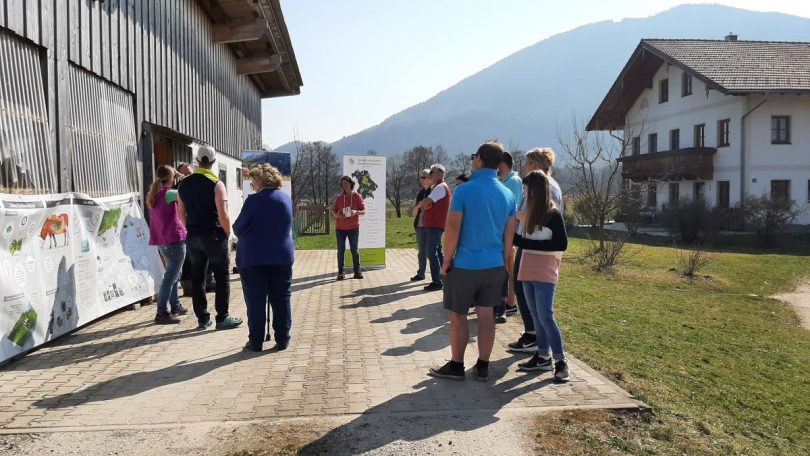 Steffi Adeili von der Öko-Modellregion Hochries-Kampenwand-Wendelstein erklärt dabei die Zusammenhänge zwischen Milch und Fleisch: „Eine Kuh gibt nur dann Milch, wenn sie jährlich ein Kalb bekommt. Damit wird aber neben der Milch das Koppelprodukt Rindfleisch produziert. Nämlich etwa 25 g / Liter Milch. Das ist Verbrauchern oft nicht klar. Es gibt aber keine Milch ohne Fleisch. Damit die Kälber aus der Bio-Milchviehhaltung in der Region aufgezogen und gemästet werden können, muss auch ein Absatzmarkt in der Region bestehen. Das ist eines der Projekte, an denen die Öko-Modellregion arbeitet.“