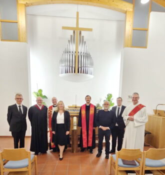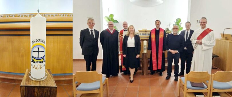 Bericht und Bilder: Rita Sandig – Gruppenbild von links: Torsten Böhme (Neuapostolische Kirche), Klaus Lerch (Evang.- Luth. Kirche), Michael Köhler (Altkatholische Kirche), Rita Sandig (Neuapostolische Kirche), Mirko Hoppe (Evang.- Luth. Kirche), Dieter Johannes Strauch (Evang.- Luth. Kirche), Kevin Sargant (Neuapostolische Kirche), Michael Leberle (Röm.- Kath. Kirche).