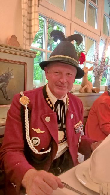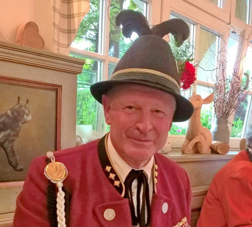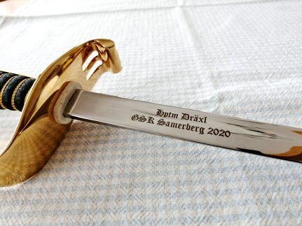 Ganz und gar nicht in das ansonsten so agile Leben und Wirken von Hochzeitslader und Gebirgsschützen-Hauptmann Fritz Dräxl vom Samerberg passten in den Pandemiezeiten die Einschränkungen bei Feierlichkeiten. Musste im Vorjahr schon zu seinem 60. Geburtstag nur mit Abstand und über den Gartenzaun hinweg gratuliert werden, so wurde auch die verschobene und geplante Feier zum nunmehr 61. Geburtstag samt sonst üblichem Ehrensalut abgesagt werden. Deswegen überlegten sich in privater Mission Hauptmann-Stellvertreter Michael Spöck und GSK-Schatzmeister Peter Schrödl ein besonderes “Ersatz-Geschenk” in Form eines nigel-nagel-neuen “Bayerischen Offiziers-Säbels” mit Gravur. Dazu scherzten Spöck und Schrödl bei der Übergabe noch wie folgt: “Dein alter Säbel ist nicht nur alt, sondern auch stumpf und zum Säbel dazu bekommst Du noch einen neuen Hacklstecken, damit Du auch im neuen Altersabschnitt immer noch schneidig daherkommen kannst”. Fritz Dräxl freute sich sichtlich über die schöne Idee und über die Präsente und lud seine beiden GSK-Kameraden corona-passend zu einer Brotzeit ein.