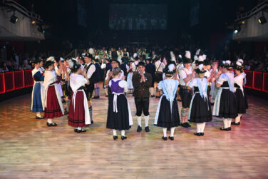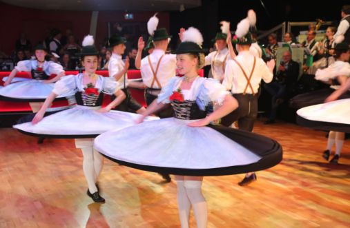 Nach dem Auftanz, musikalisch begleitet von Wolfgang Grünbauer und seinen Oktoberfest-Musikanten und angeführt von den Tanzmeistern Melanie und Christian Baumann, boten die Repräsentantenpaare der angeschlossenen Gauverbände den ersten Höhepunkt des Abends. Sie zeigten zunächst einige Mühlradl-Figuren und anschließend die Olympia-Sternpolka als Referenz an die Stadt München, da dieser Tanz 1972 anlässlich der Olympischen Spiele in München entstanden ist. Weitere Höhepunkte des ‚Oide Wiesn Bürgerballs‘ bildeten die gekonnten Auftritte der Plattler und Dirndln vom Isargau unter der Leitung der stellvertretenden Gauvorplattler Florian Bergweiler und Roland Hemmer sowie die Goaßlschnalzer vom Trachtenverein Hinterskirchen mit ihren kraftvollen Schnalzereinlagen. Im Silbersaal spielten die Blaskapelle Beratzhausen aus der Oberpfalz und die Rottauer Tanzlmusi aus dem Chiemgau zünftig zum Tanz auf und die Narhalla München zeigte im großen Ballsaal ihr aktuelles Programm. Natürlich durfte um Mitternacht die ‚Münchner Francaise‘ nicht fehlen und Georg Kleesattel dankte abschließend den Mitwirkenden für die gelungenen Auftritte, die dem ‚Oide Wiesn Bürgerball‘ erneut eine besonders festlich-bayerische Note verliehen haben.