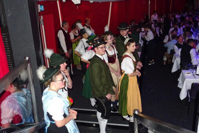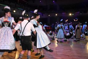 Nach dem Auftanz, musikalisch begleitet von Wolfgang Grünbauer und seinen Musikanten und angeführt von den Tanzleitern Melanie und Christian Baumann, boten die Repräsentantenpaare der angeschlossenen Gauverbände den ersten Höhepunkt des Abends. Sie zeigten in drei Kreisen (Tanz- und Plattlerkreis, Kreis mit chiemgauerischem Plattlerstil, Kreis mit oberlandlerischem Plattlerstil) die Kreuzpolka, einen der Verbands-Plattler und zugleich ein flotter Volkstanz. Mit diesem Tanz, in dem Plattler- und Tanzgaue zusammenwirkten, demonstrierten die jungen Trachtler einmal mehr die Einheit des Bayerischen Trachtenverbandes.