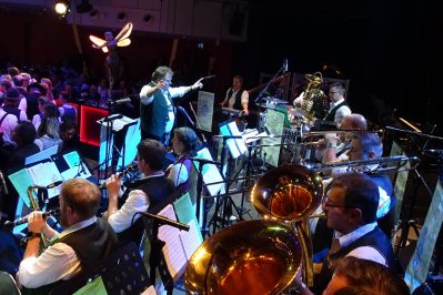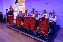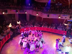 Weitere Höhepunkte des ‚Oide Wiesn Bürgerballs‘ bildeten die Auftritte der Gaugruppe vom Isargau unter der Leitung von Landes- und Gauvorplattler Matthias Wiesheu, die mit schneidigen Darbietungen (u. a. Mühlradl-Figuren, Plattln, Dirndldrahn, ‚Dirndl-Fliager‘) das Publikum begeisterte, und die Goaslschnalzer vom Trachtenverein Hinterskirchen mit ihren gekonnten Schnalzereinlagen. In einer Art ‘Workshop’ gaben außerdem einige Plattler und Schnalzer einem interessierten Publikum erste Einblicke in die Techniken des Schuhplattlns und des Schnalzens. Im Foyer des Dt. Theaters konnten die Gäste den Klängen der ‚Boarisch’n Bris‘ lauschen und im Tanzsaal spielte die Blaskapelle Beratzhausen aus der Oberpfalz zum zünftigen Volkstanz auf. Auch die Narhalla München zeigte ihr aktuelles Programm und bezauberte die Gäste mit einer musikalischen und tänzerischen ‚Reise nach Wien‘.