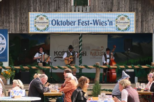 Für Hochstimmung sorgte die „Koitaboch Musi“ aus Garmisch-Partenkirchen. Flori, Hausl und Schorschi gaben ihr Bestes. Highlights waren die Plattler-Einlagen von der Trachtentanzgruppe des Vereins. Dazwischen verliehen die Alphörner dem Ganzen ein gewisses alpines Flair. Es war eine gelungene Wiesn-Gaudi im Süden Berlins, nicht zuletzt auch Dank des enormen Engagements des Hüttenwirts, Lutz Bande, mit seinem Team. Der Verein der Bayern in Berlin bedankt sich bei allen Gästen recht herzlich,
