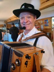 Zur fortgeschrittenen Stunde war dann Wiesn-Gaudi bis spät in die Nacht angesagt. Dabei sorgte der Alpen-DJ des Vereins „Wanja“ für Hochstimmung, unterstützt vom Tonmeister Andreas Amberger. Es war nach der Pandemiepause das erste Oktoberfest des Vereins, das in Eigenregie von den Mitgliedern organisiert und durchgeführt wurde. Dabei hat sich insbesondere unser Neumitglied aus Oberbayern, Anja Gsottschneider, als Küchenchefin voll eingebracht. Mit ihren Erfahrungen in der Event-Gastronomie leistete sie mit ihrem Helferteam Außergewöhnliches. Besonders anerkennenswert war, dass sie trotz nahezu völliger Erschöpfung immer bayerisch „guad drauf“ war. Daneben auch ein besonderer Dank an die ehrenamtliche Küchen-Crew (Andrea, Maja, Margit, Nicole, Ingrid, Kerstin, Karin, Detlef, Bernd, Julian, Andreas, Moritz und viele andere). Es gab selbstgebackenen Kuchen von den Vereinsmitgliedern, deftiges vom Grill, Leberkas-Semmeln und Hopfengetränk gemäß bayerischer Brautradition vom Herzoglich Bayerischen Brauhaus Tegernsee und dem Brauhaus Schneider Weiße. An beide Brauereien ein herzliches Dankeschön für die Beistellung der Festzelte und deren Dekoration.