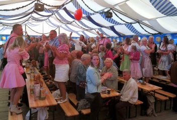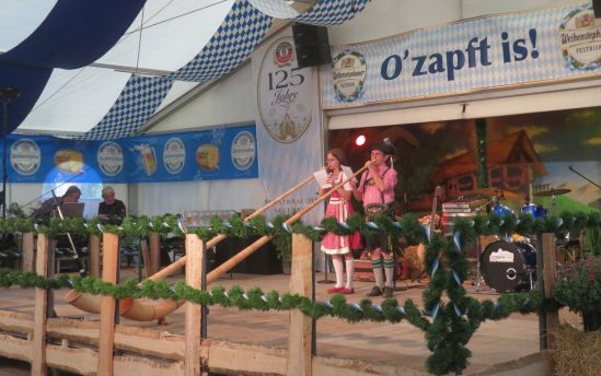 O’zapft is, auch wieder beim Verein der Bayern in Berlin. Wie in den Jahren zuvor, ein Highlight besonderer Art in der Bundeshauptstadt. Als Trachtenfest ist es nicht nur ein übliches Oktoberfest, sondern auch eine traditionelle Brauchtumsveranstaltung. Neben Schuhplattler der Trachtengruppe des Vereins der Bayern in Berlin, sorgten die O’Treiber aus Berlin, die „Koitabach Musi“ aus Garmisch Partenkirchen und der Alpen-DJ „Gabi“ für Hochstimmung im ausverkauften Festzelt. Daneben gab auch das Alphorn-Duo vom Verein der Bayern einige Klänge zum Besten. Zu Gast war auch die Berliner Showtanzgruppe „Berlicious“, die das Publikum mit akrobatischen Revue-Tänzen begeisterte.